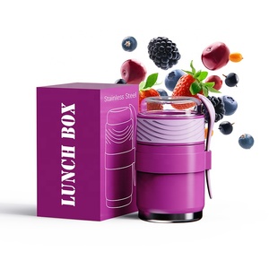 Porta pranzo Oumeng per bambini, riutilizzabile, a tenuta stagna, con 3 scomparti, in acciaio inossidabile, tipo bento.