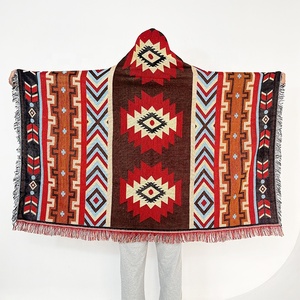 Coperta con cappuccio boho/Anime stile Jacquard con motivo MOQ Unisex personalizzato appezzamento Poncho portatile da campeggio